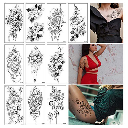 10 Sheets Temporary Tattoo Water Transfer Flowers Tattoo Sticker Decal Mandala Rose Peony Tattoo Sticker Sketch Art Design Waterproof Fake Tattoo Body Tattoo Techniques Party Favor Supplies Walmart Com