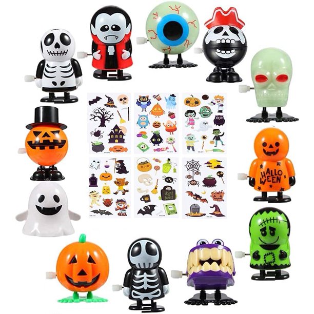 Outop Halloween 12 Pcs Wind Up Toys And 6 Pack Temporary Tattoo Stickers Assorted Goody Bag Filler Clockwork Toys Supply For Holiday Party Favors Birthday Gifts Walmart Com